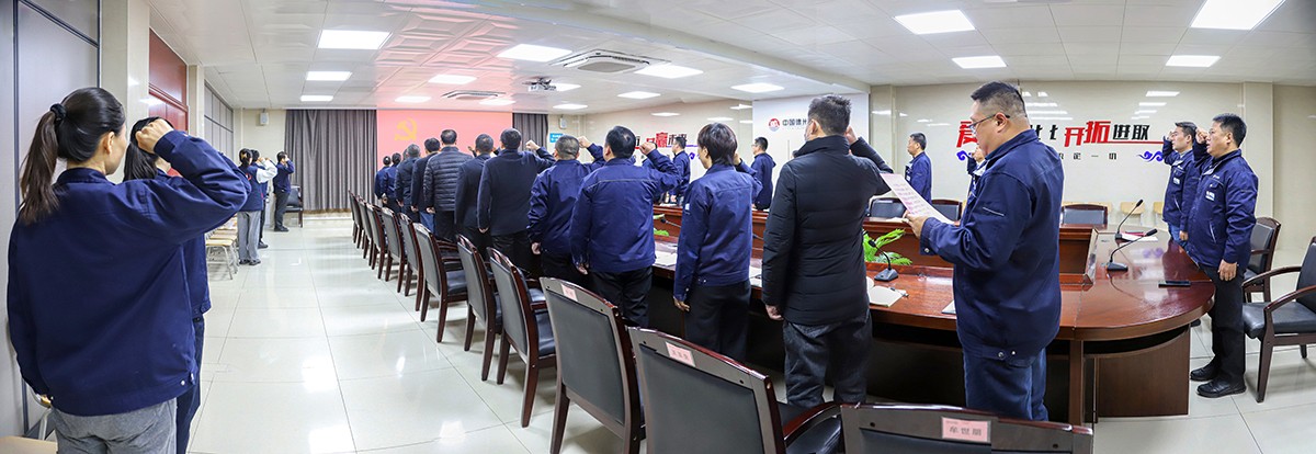 雄壮的国歌后,党委委员、副总经理蔡伟带领全体党员重温了入党誓词。